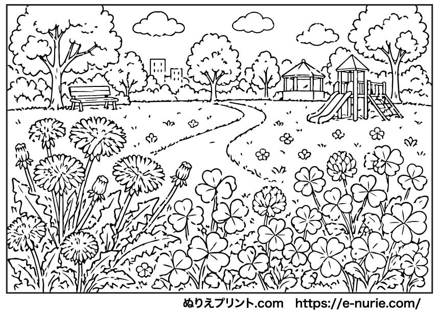 今回のぬりえプリントは【たんぽぽとクローバー】になります。