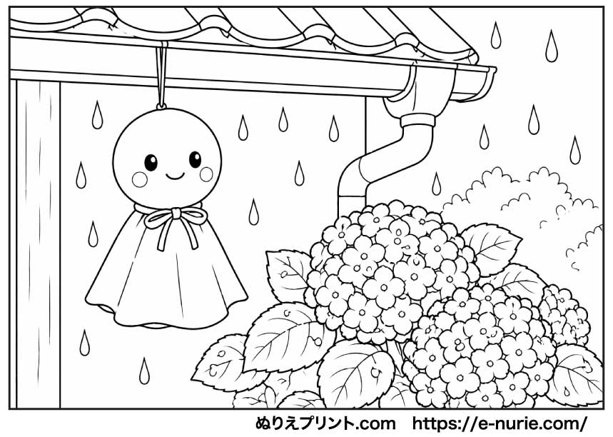 今回のぬりえプリントは【軒下のてるてるぼうず】になります。