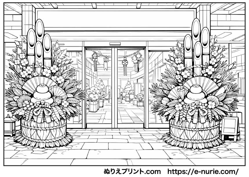 ぬりえプリント【門松】